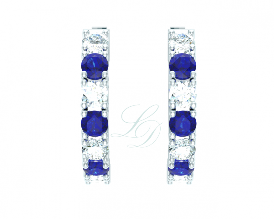 | Náušnice ze 14 Kt bílého zlata s modrými safíry a přírodními diamanty. | |