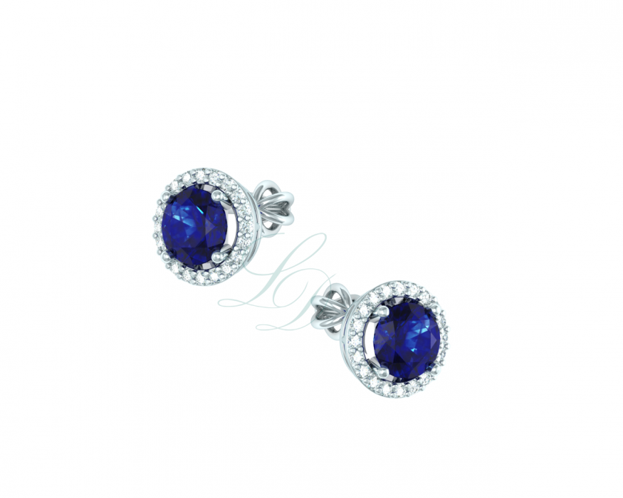 | Náušnice ze 14 Kt bílého zlata s modrými safíry a přírodními diamanty.