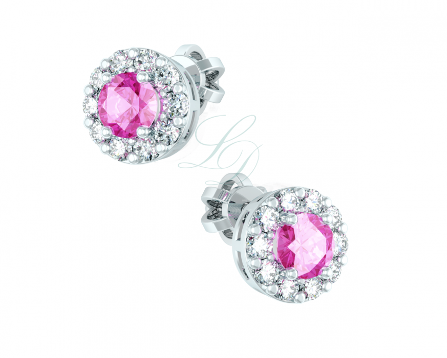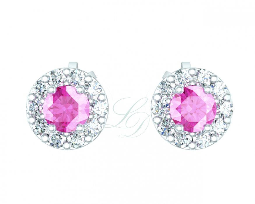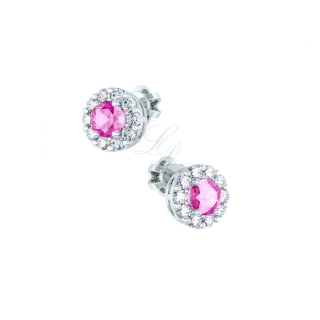 | Náušnice ze 14 Kt bílého zlata s růžovými safíry a přírodními diamanty. | |