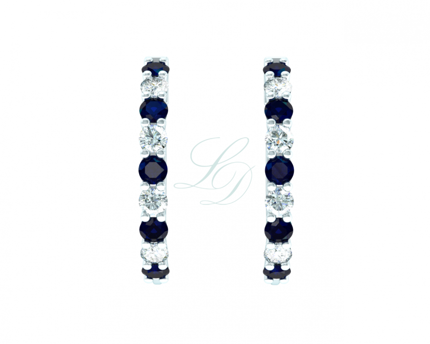 | Náušnice ze 14 Kt bílého zlata s modrými safíry a přírodními diamanty. | |