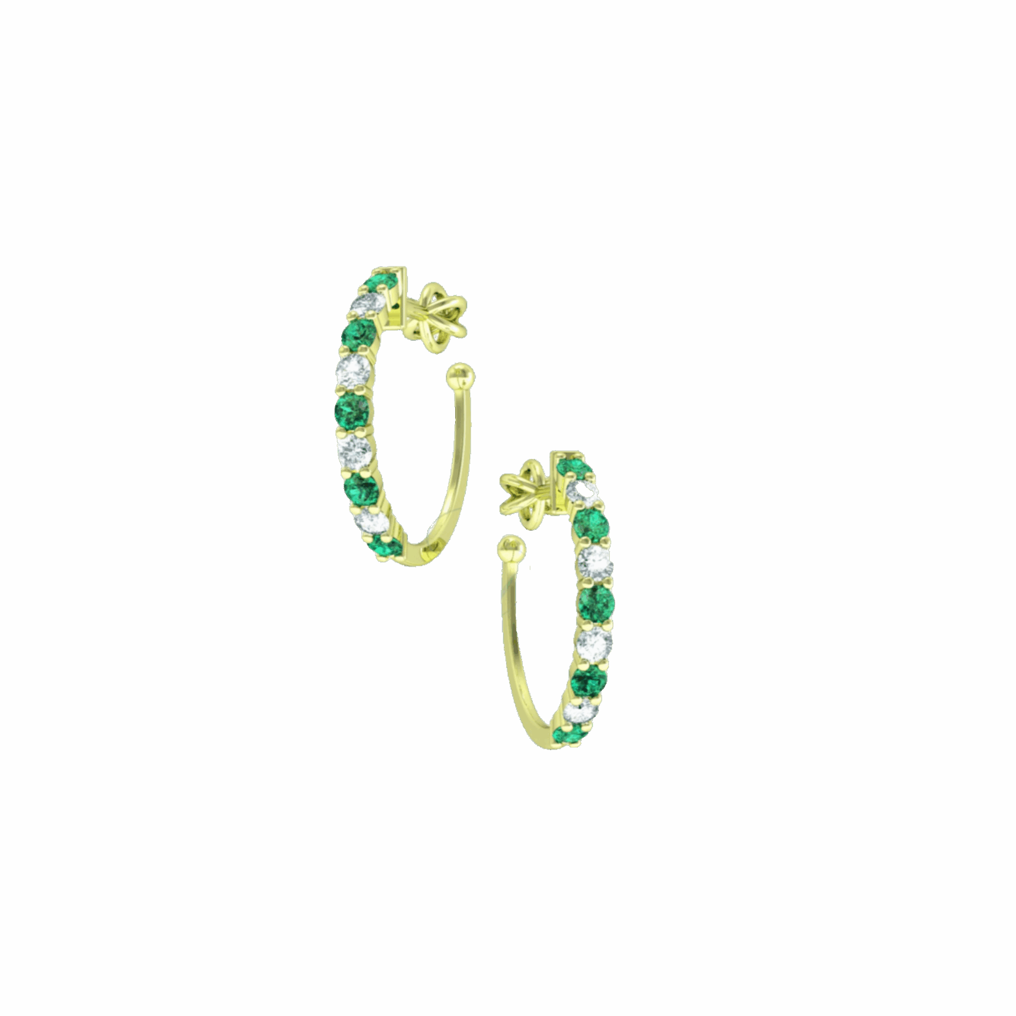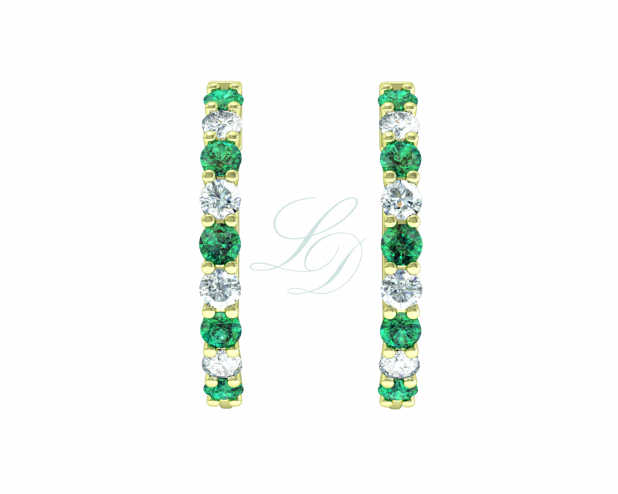 | Náušnice ze 14 Kt žlutého zlata se smaragdy a přírodními diamanty. | |