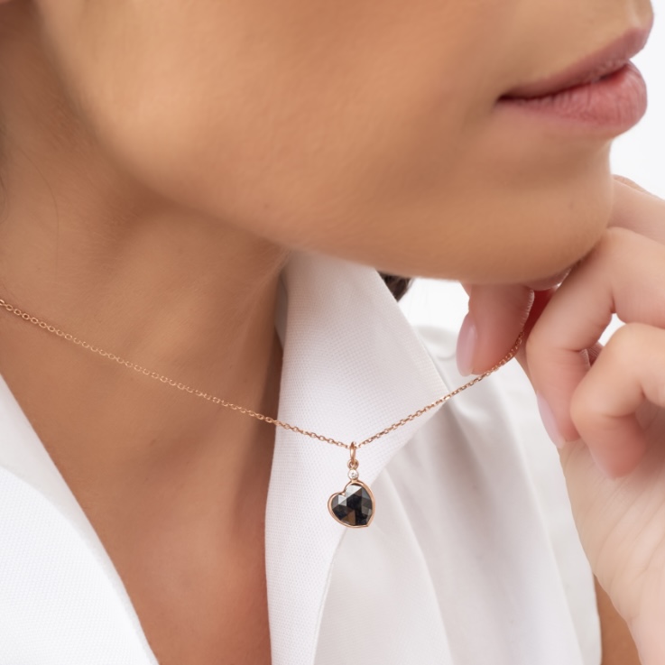 Přívěsek srdíčko – růžové zlato, černý diamant