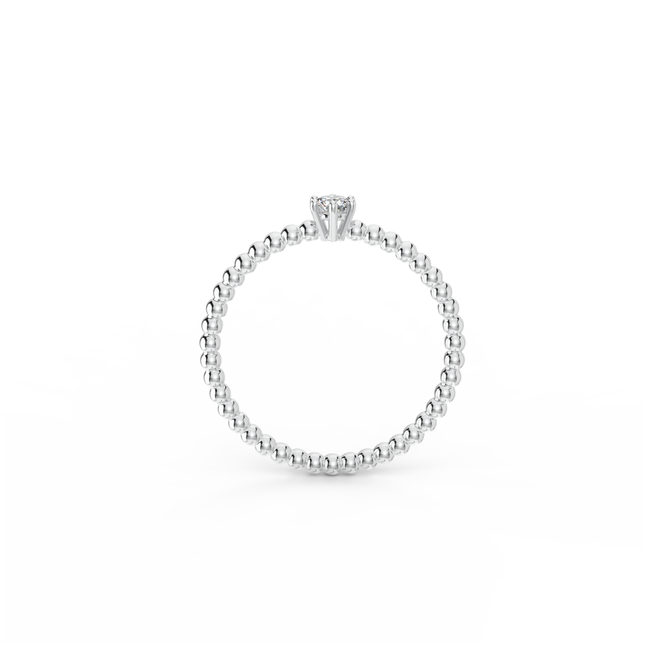 | Prsten z kuličkového 14 Kt bílého zlata se třpytivým diamantem o velikosti 3 mm. |