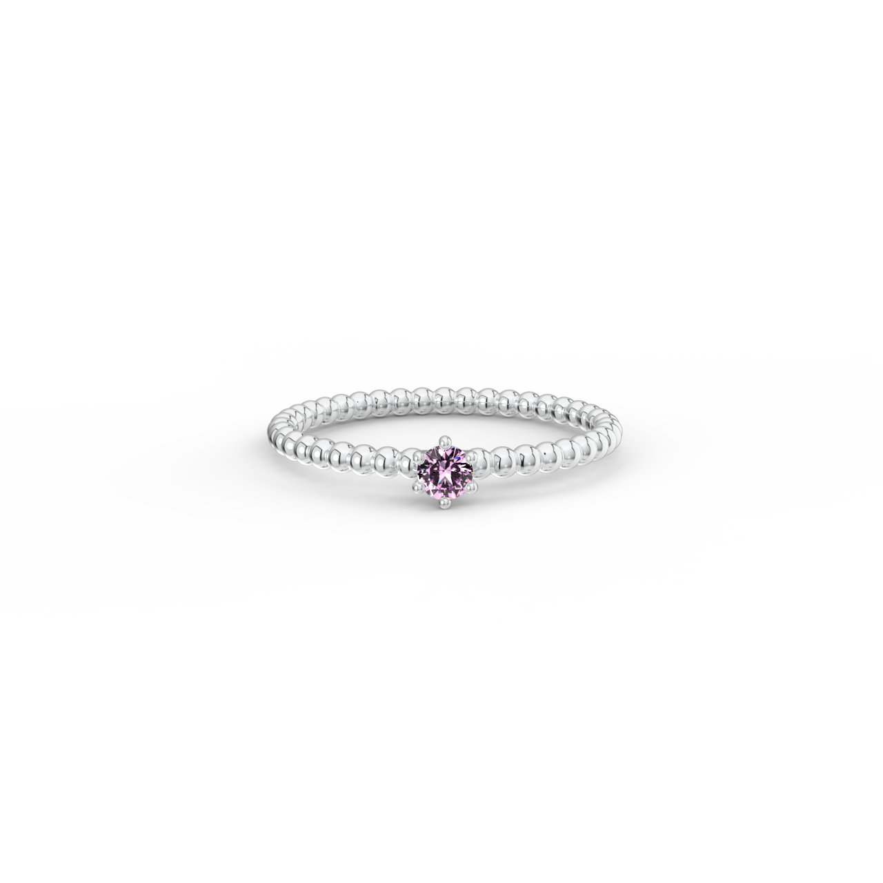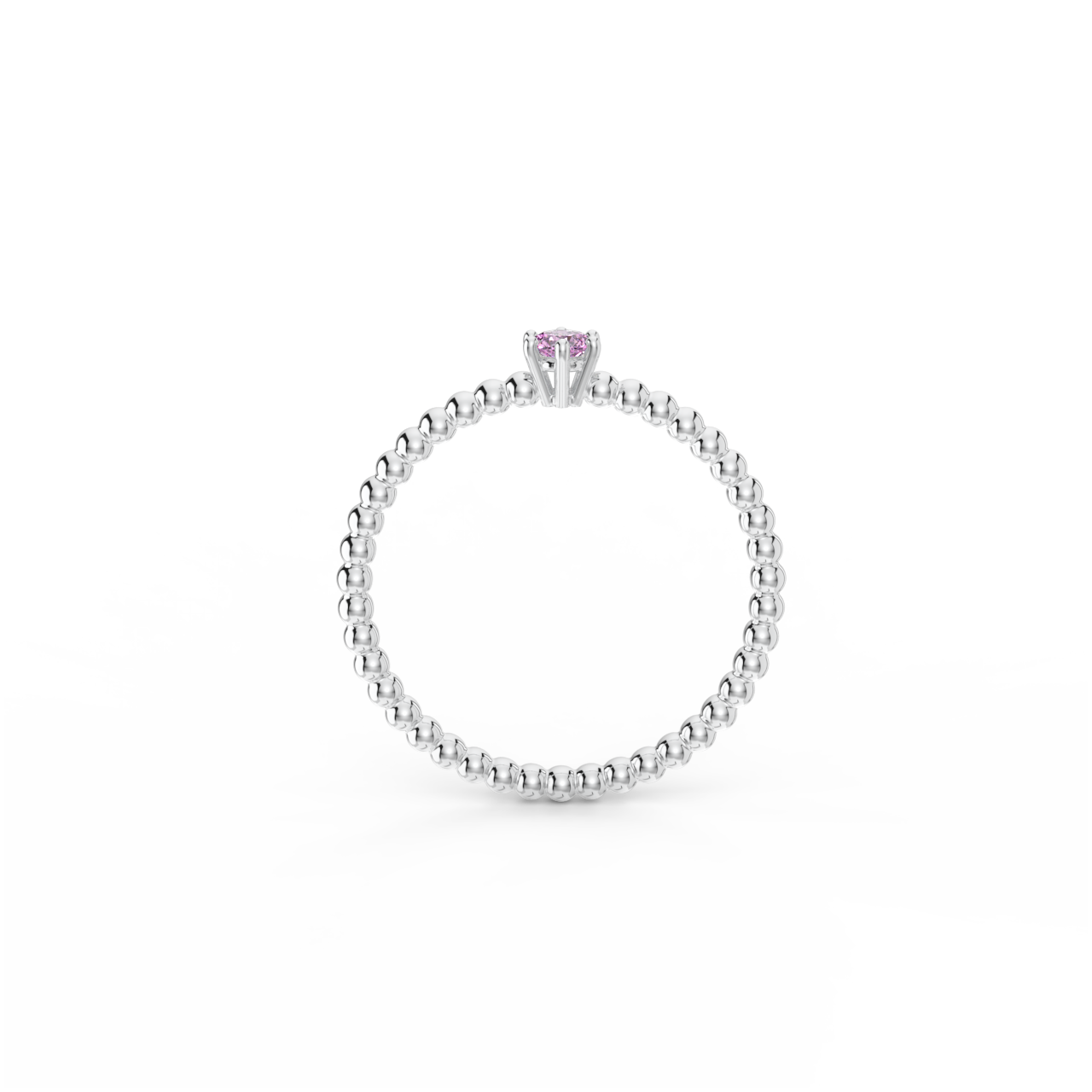 | Prsten z kuličkového 14 Kt bílého zlata s růžovým safírem o velikosti 3 mm. |