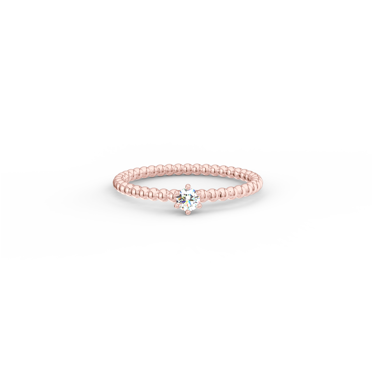 | Prsten z kuličkového 14 Kt růžového zlata s diamantem o velikosti 3 mm. |