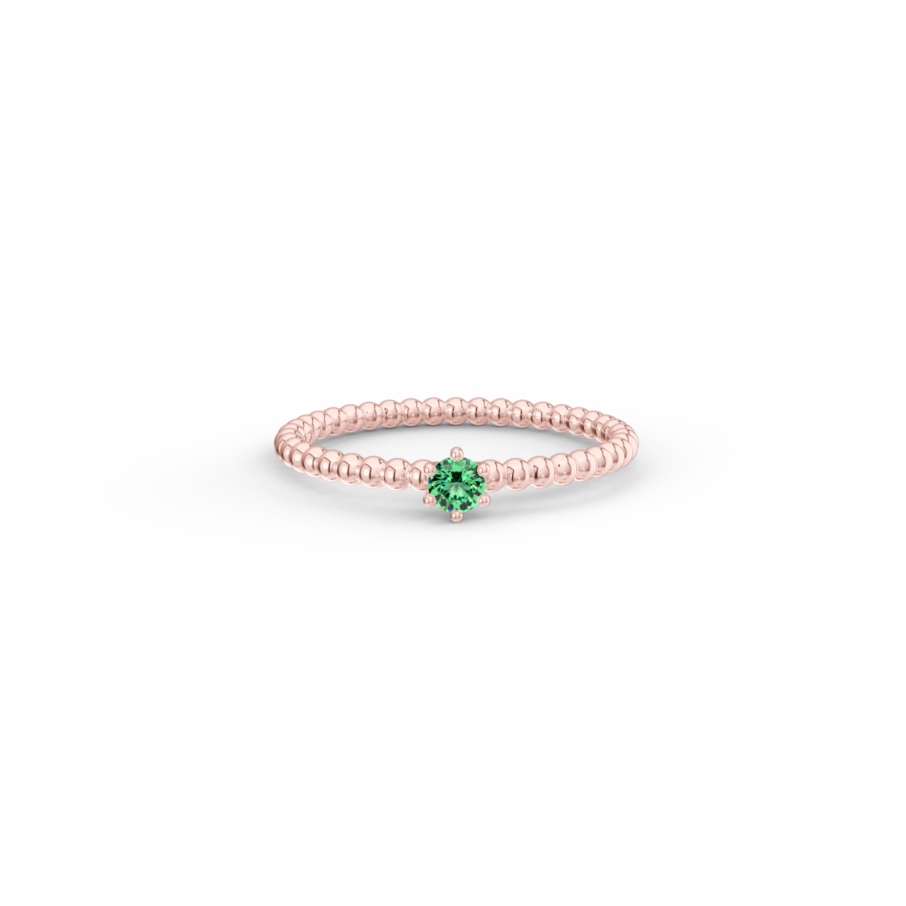 | Prsten z kuličkového 14 Kt růžového zlata se smaragdem o velikosti 3 mm. |