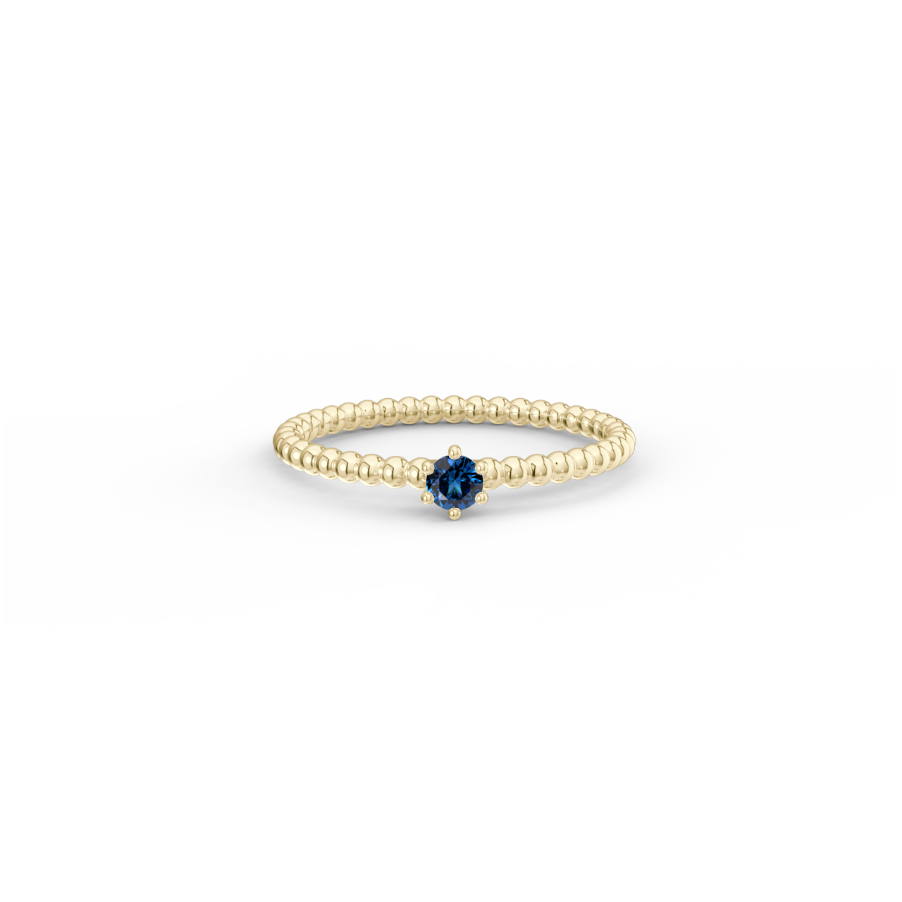 | Prsten z kuličkového 14 Kt žlutého zlata s modrým safírem o velikosti 3 mm. |
