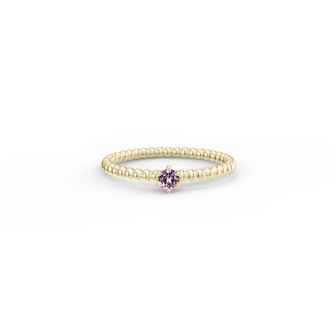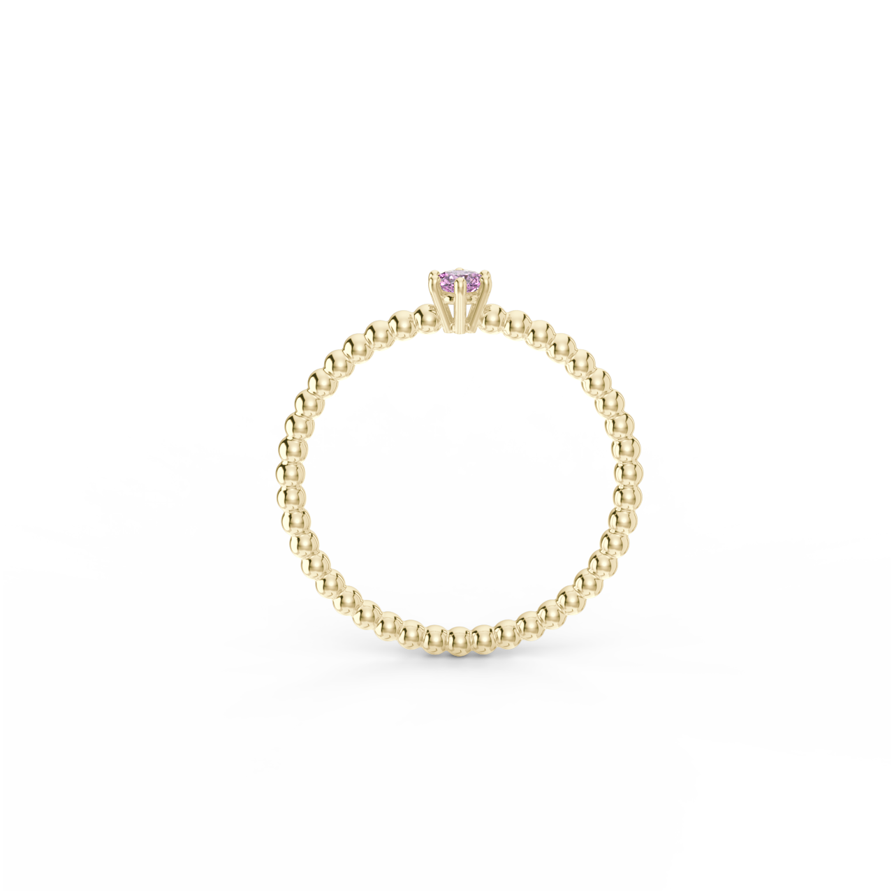 | Prsten z kuličkového 14 Kt žlutého zlata s růžovým safírem o velikosti 3 mm. |