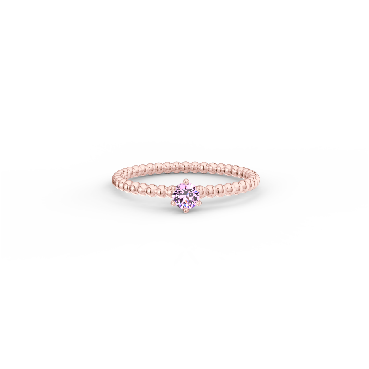 | Prsten z kuličkového 14 Kt růžového zlata s růžovým safírem o velikosti 3,5 mm. |