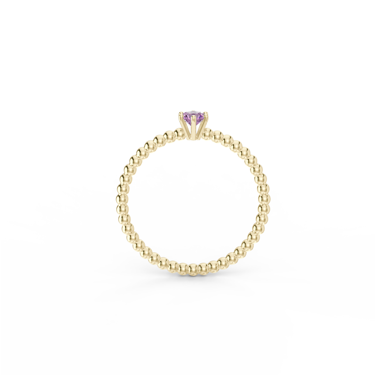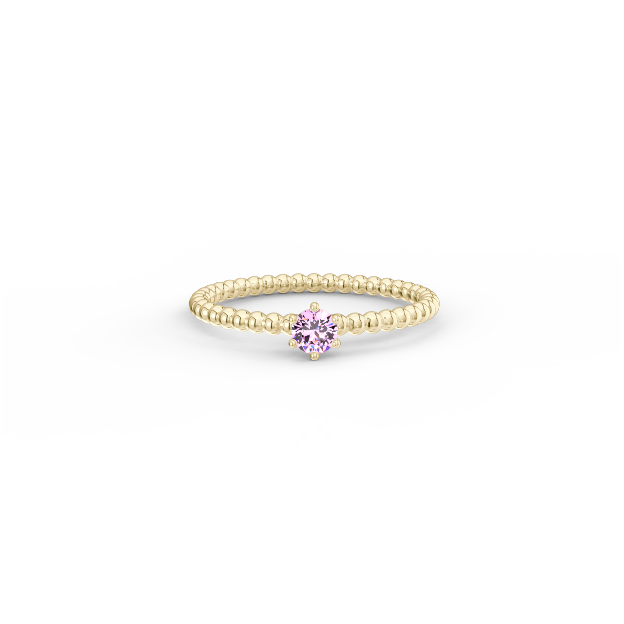 | Prsten z kuličkového 14 Kt žlutého zlata s růžovým safírem o velikosti 3,5 mm. |