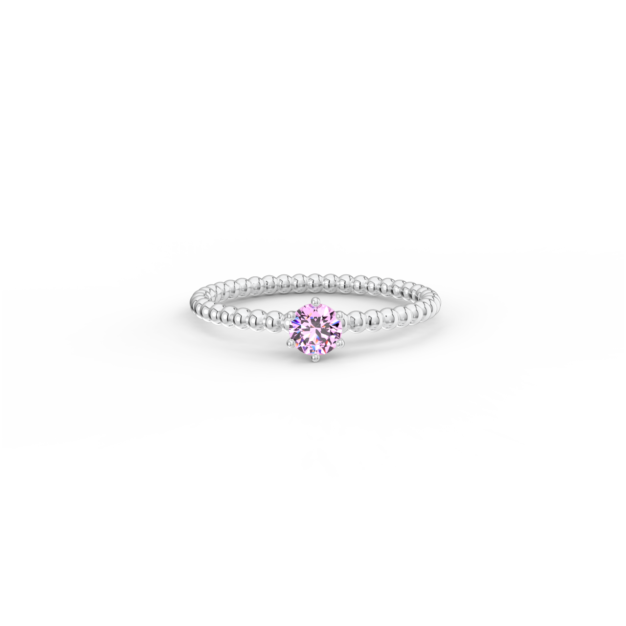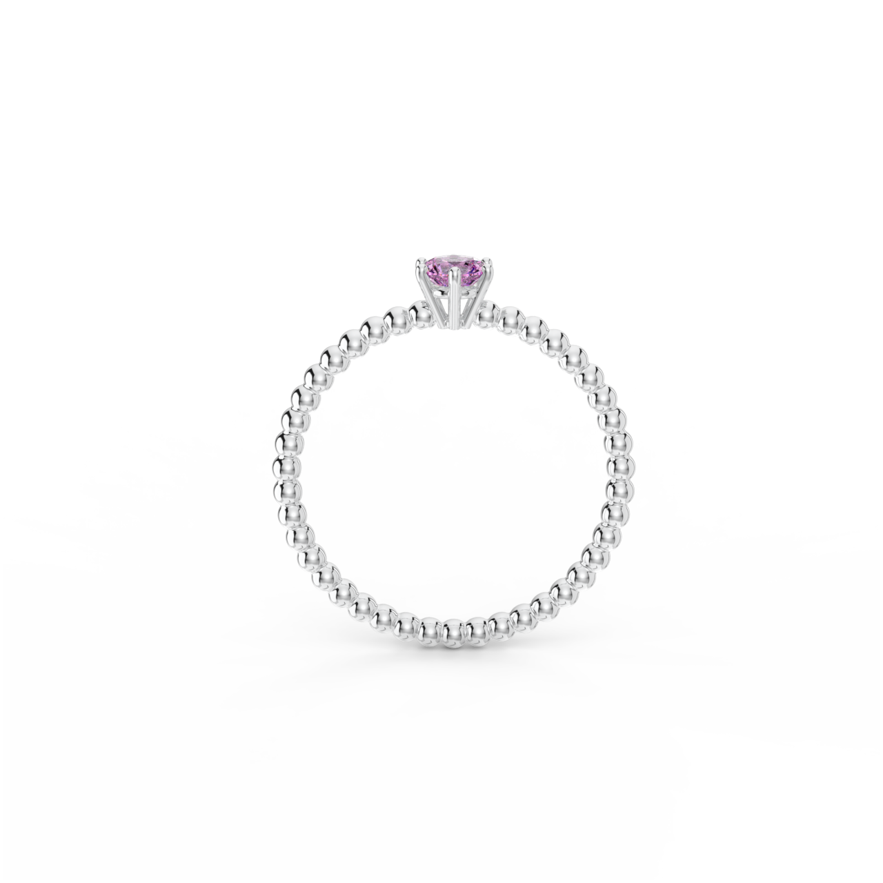| Prsten z kuličkového 14 Kt bílého zlata s růžovým safírem o velikosti 4 mm. |
