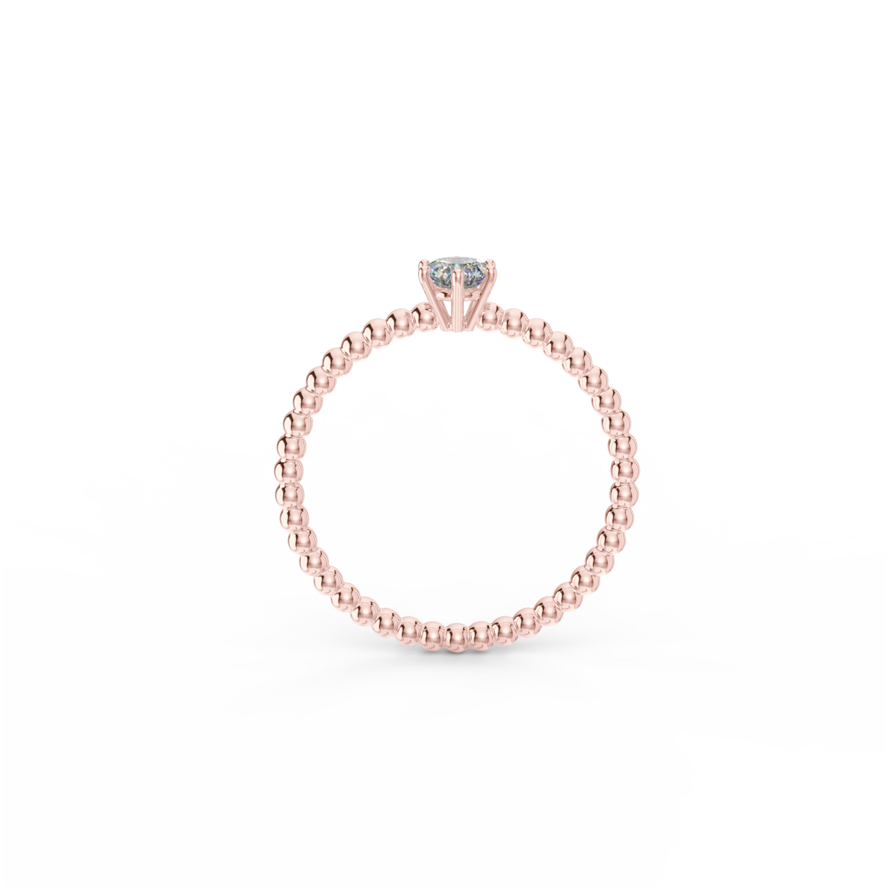 | Prsten z kuličkového 14 Kt růžového zlata s diamantem o velikosti 4 mm. |