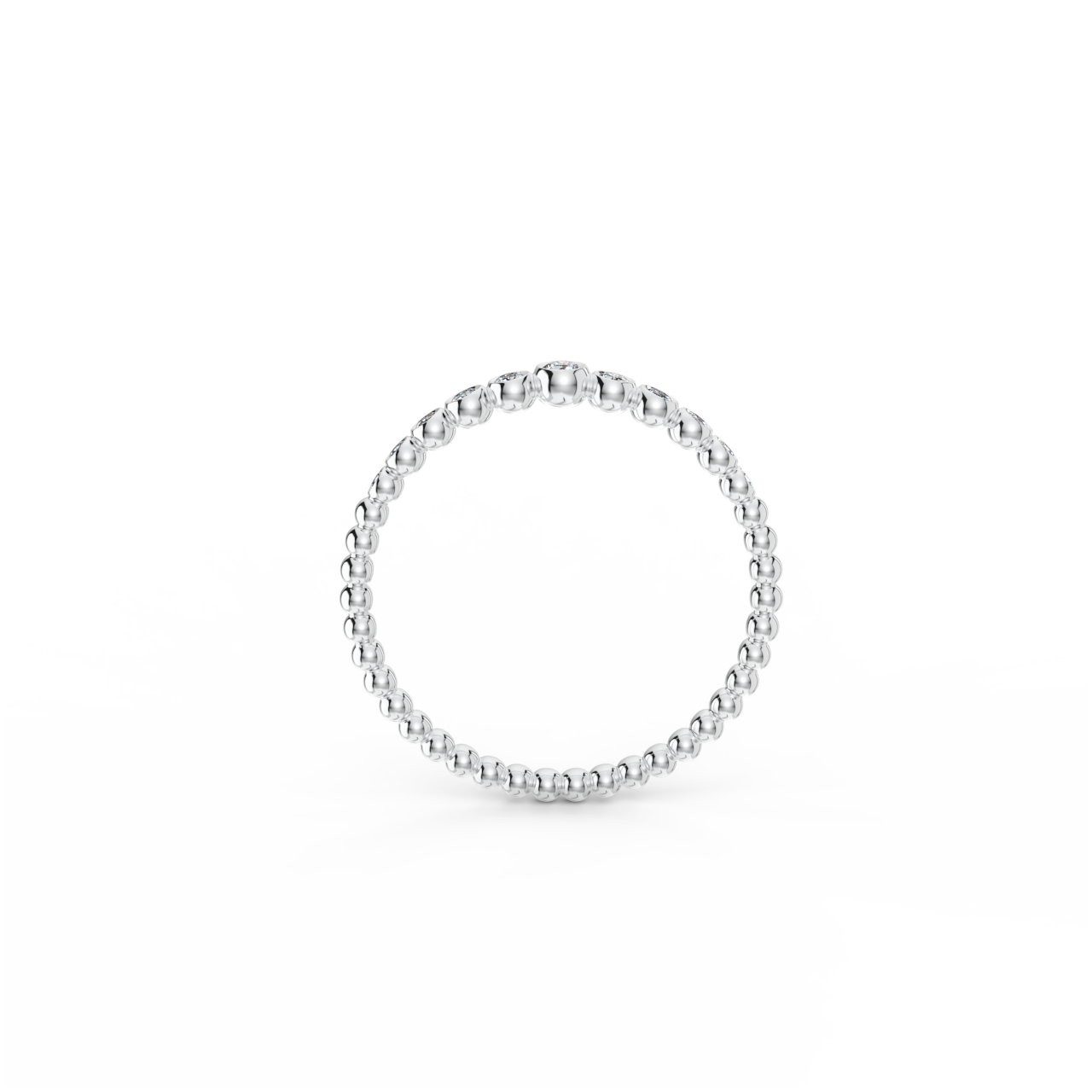 | Prsten z kuličkového 14 Kt bílého zlata s diamanty. |