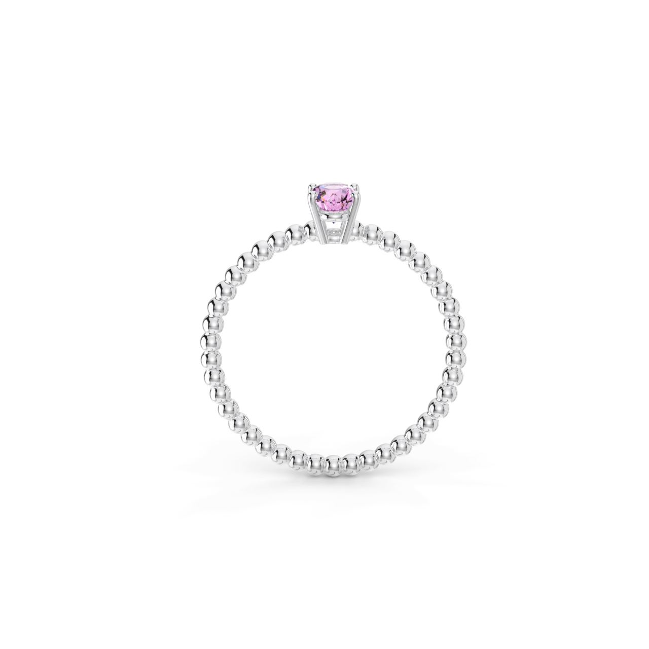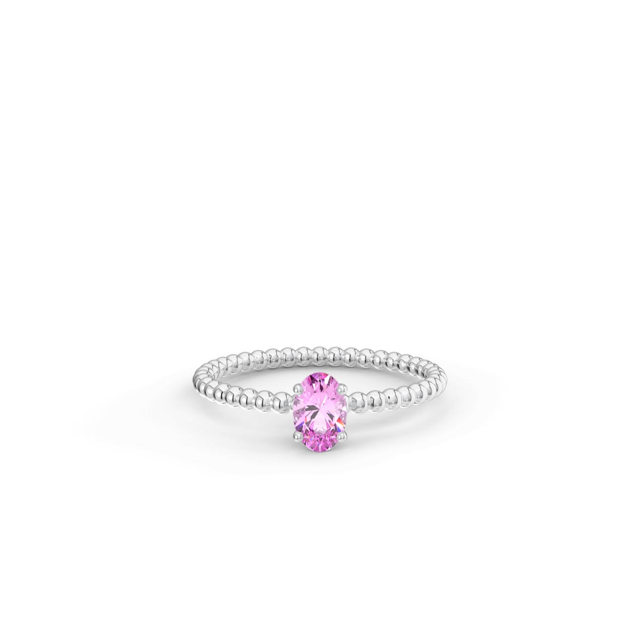 | Prsten z kuličkového 14 Kt bílého zlata s oválným růžovým safírem o velikosti 6 x 4 mm. |
