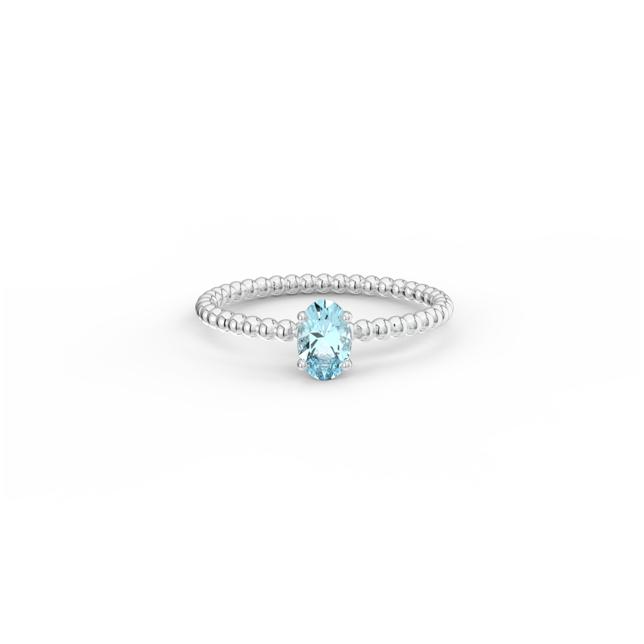 | Prsten z kuličkového 14 Kt bílého zlata s oválným Swiss topazem o velikosti 6 x 4 mm. |