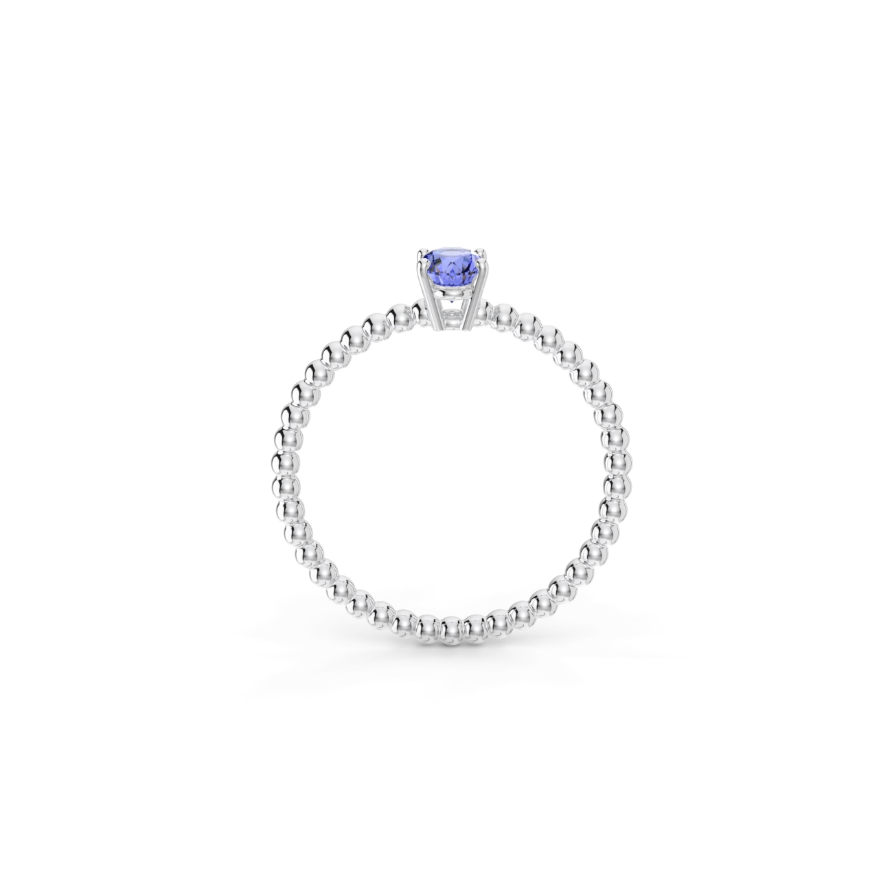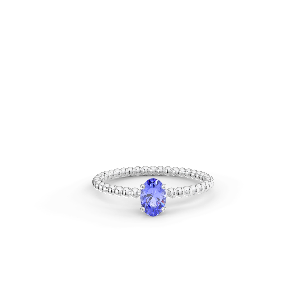 | Prsten z kuličkového 14 Kt bílého zlata s oválným tanzanitem o velikosti 6 x 4 mm. |
