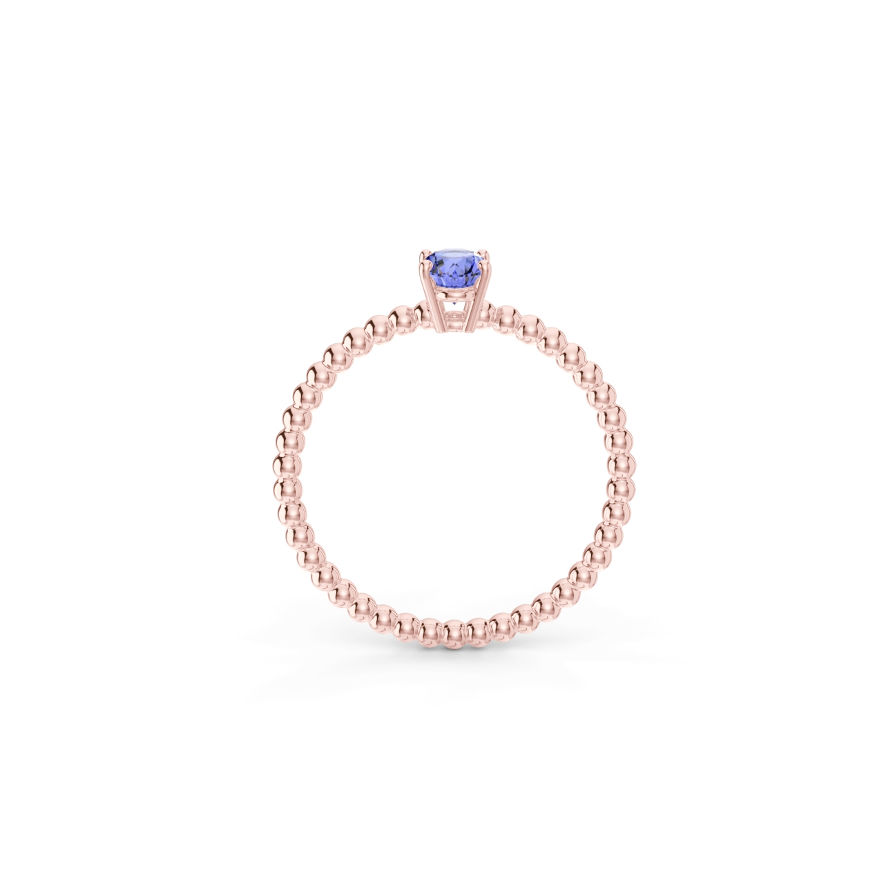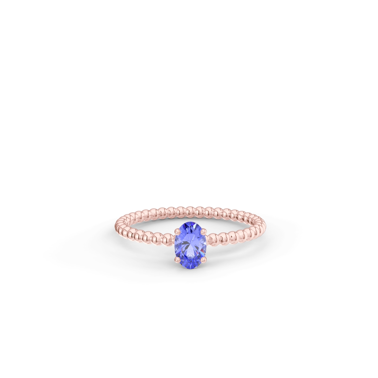 | Prsten z kuličkového 14 Kt růžového zlata s oválným tanzanitem o velikosti 6 x 4 mm. |