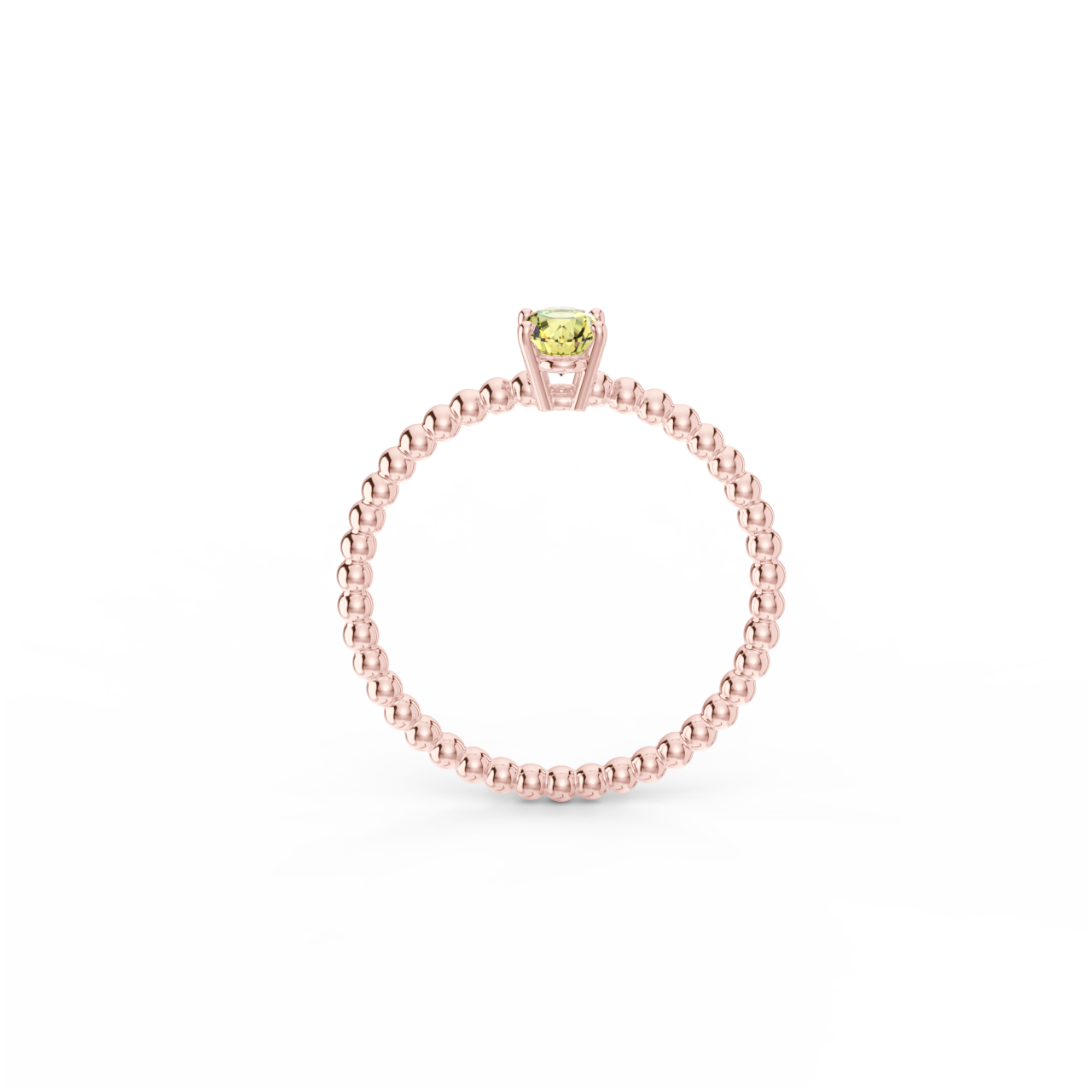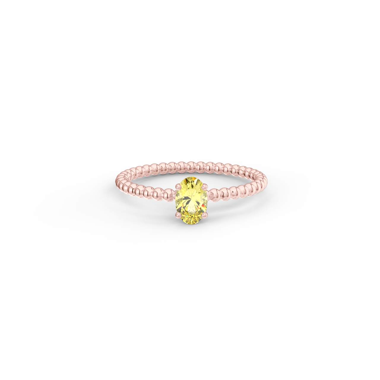 | Prsten z kuličkového 14 Kt růžového zlata s oválným žlutým safírem o velikosti 6 x 4 mm. |
