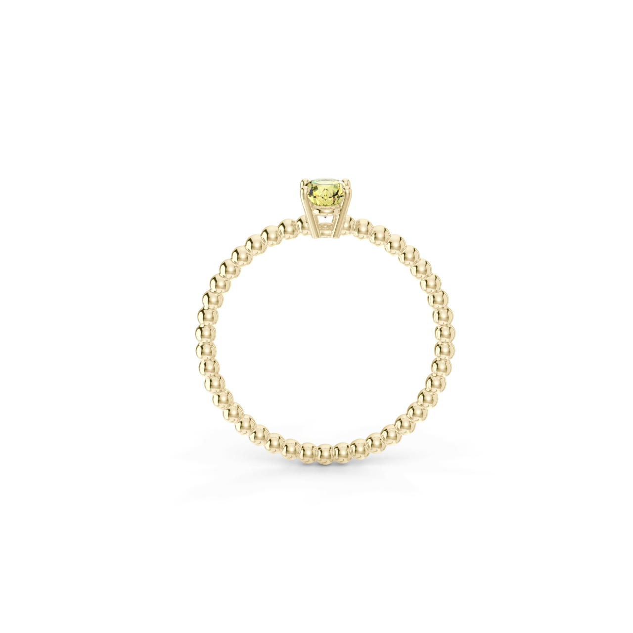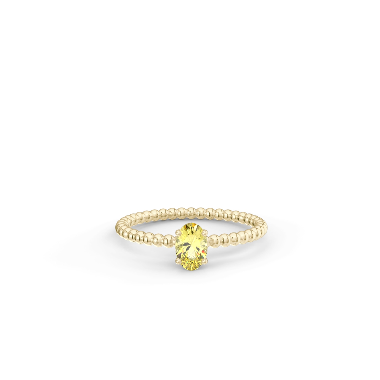| Prsten z kuličkového 14 Kt žlutého zlata s oválným žlutým safírem o velikosti 6 x 4 mm. |