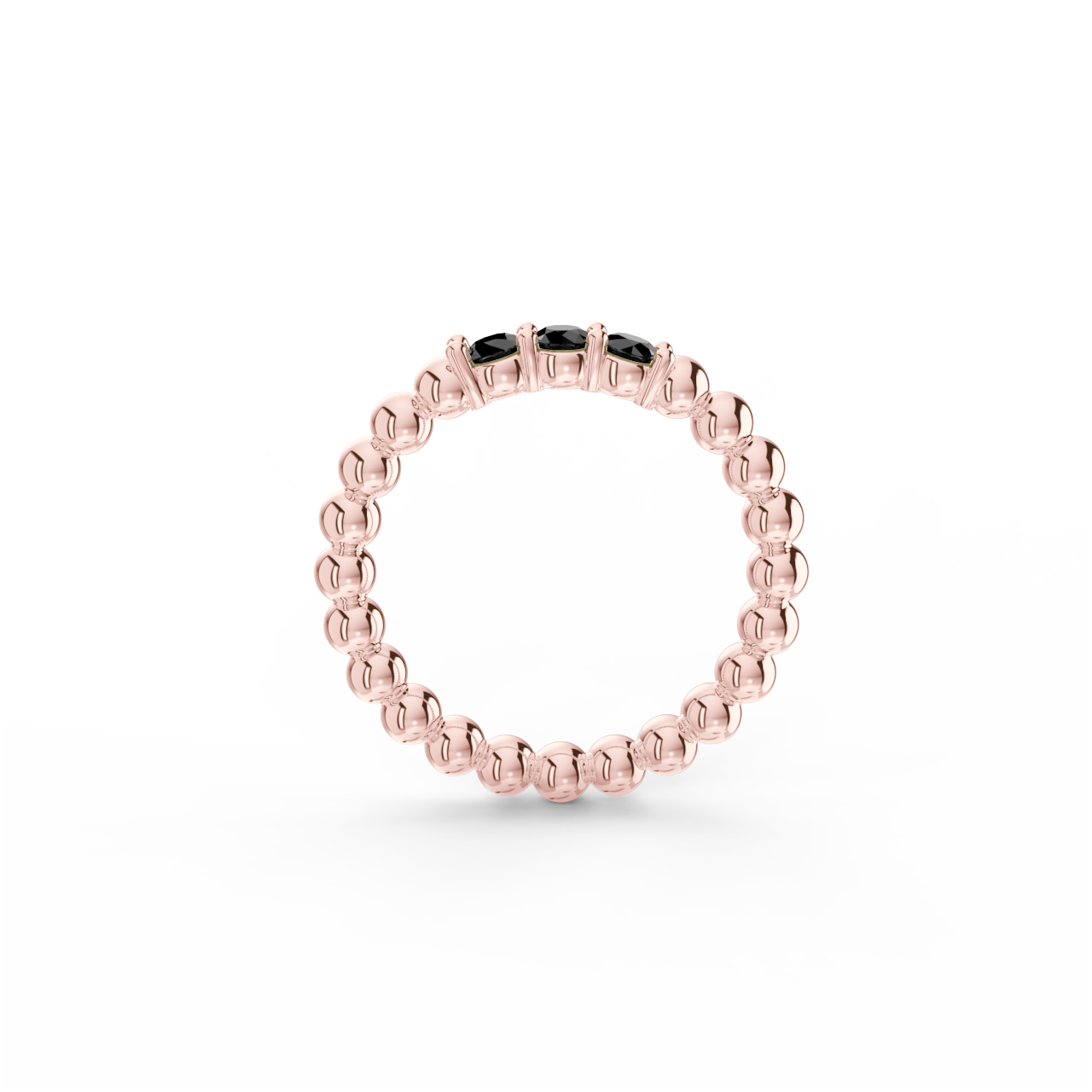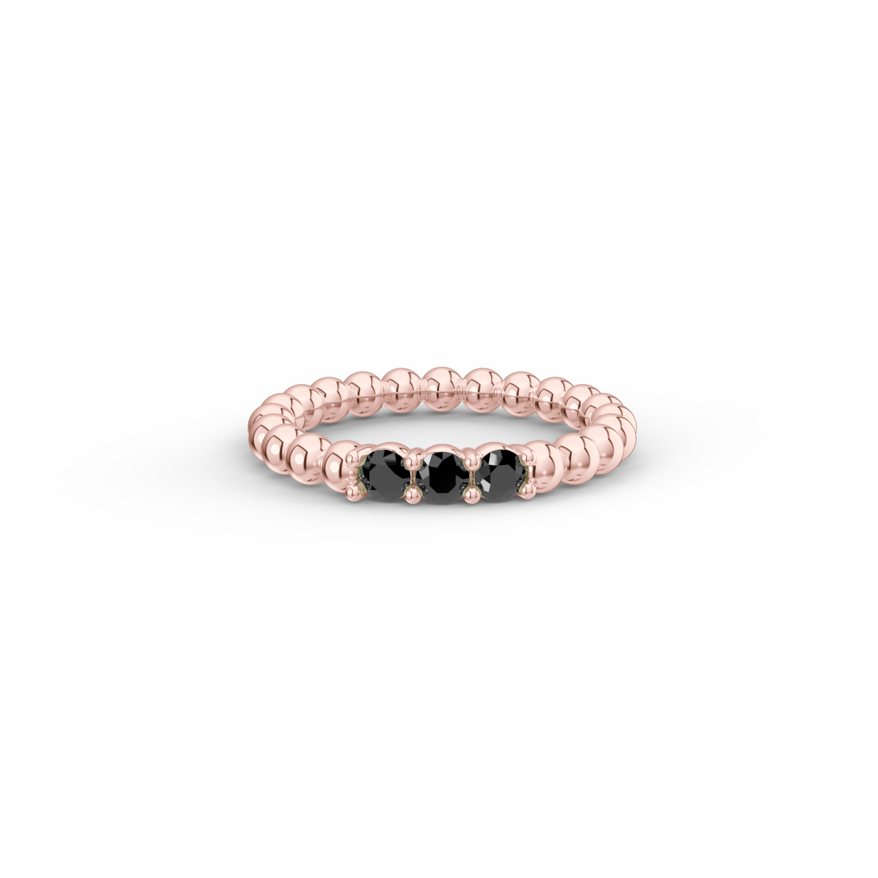 | Prsten z kuličkového 14 Kt růžového zlata s černými diamanty o velikosti 2,90 mm. |