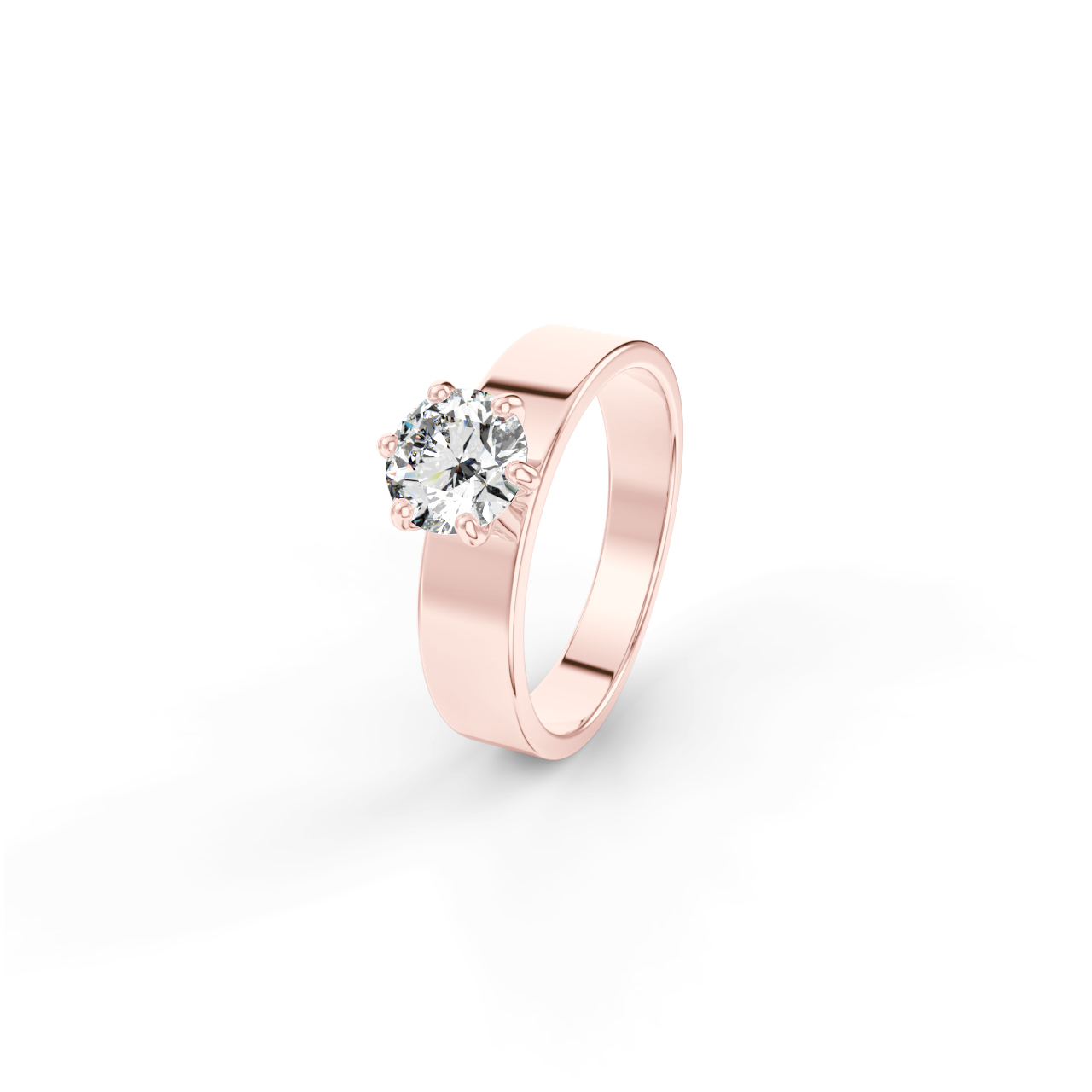 | Zásnubní prsten ze 14 Kt růžového zlata v moderním stylu se širokou obroučkou. |